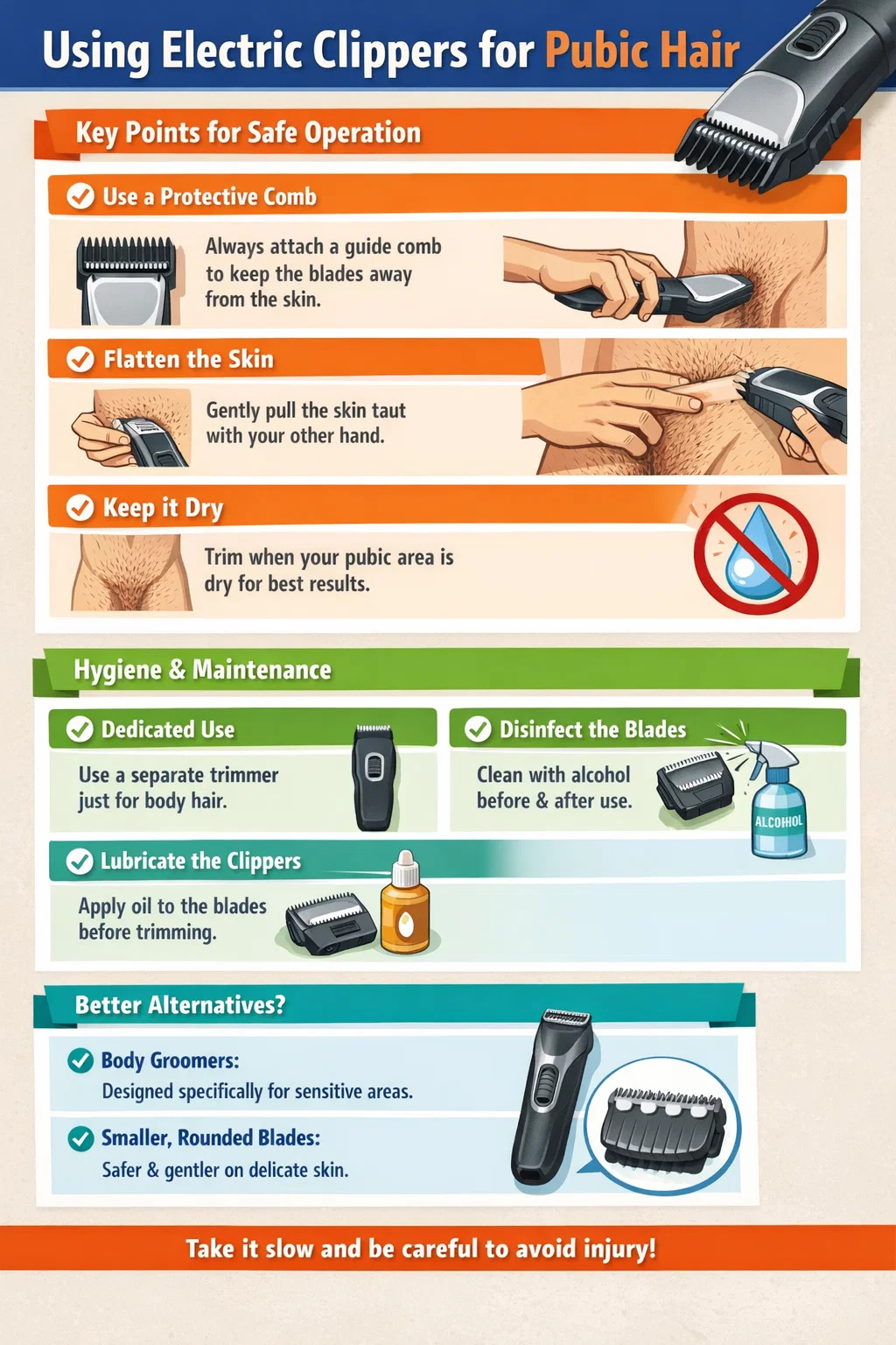 Hvis du planlægger at bruge elektriske klippere til at pleje dit kønsområde, skal du være opmærksom på følgende punkter for at sikre komfort og sikkerhed: