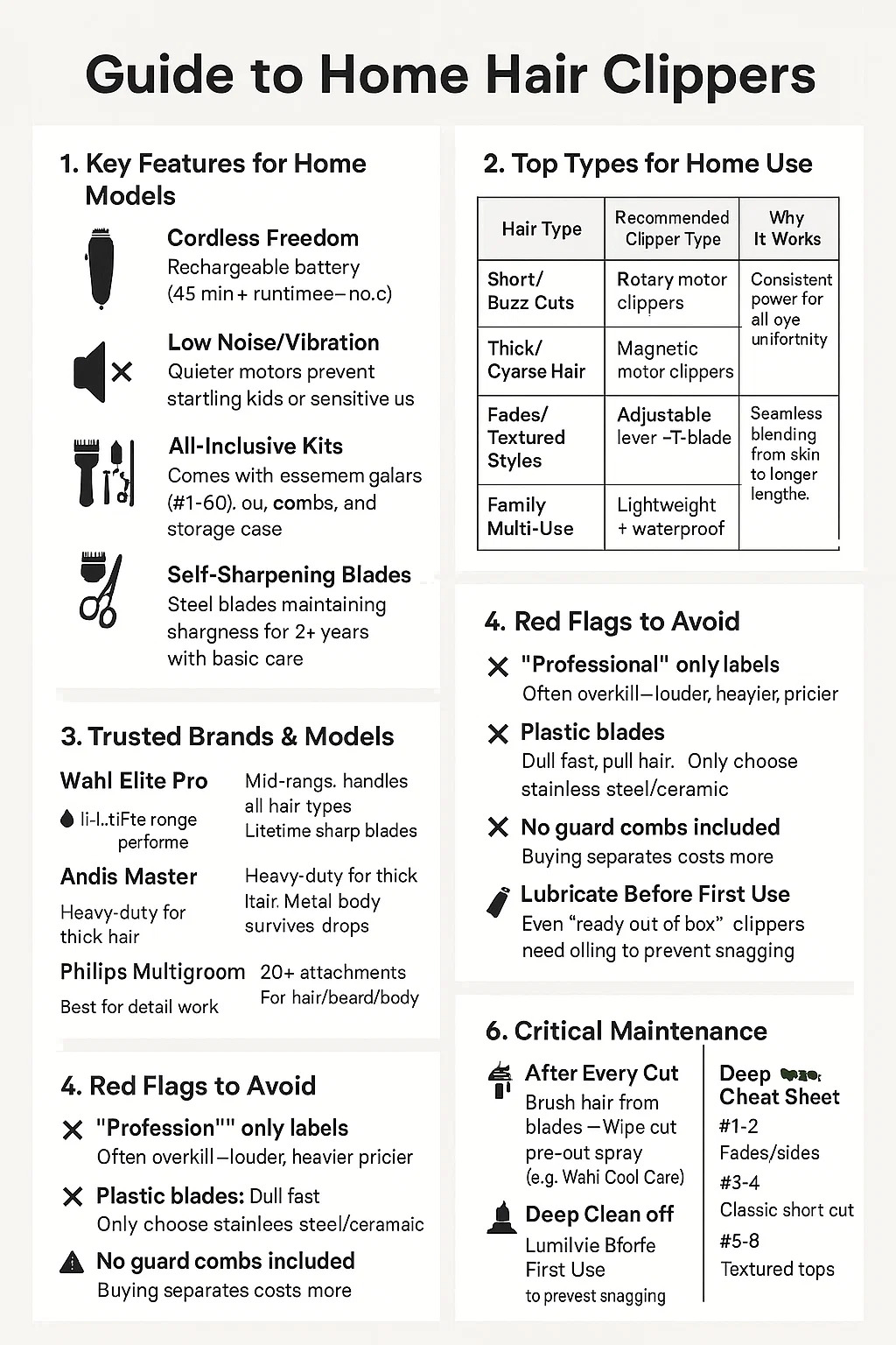 Her er en no-nonsense guide til at vælge det bedste hjem Hårklippere , baseret på den virkelige verden præstation og brugervenlige funktioner: