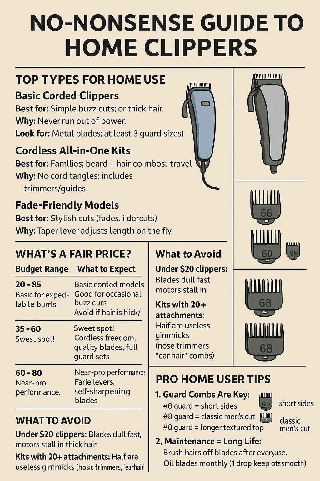 Til hjemmeklip, vil du have hårklippere der balancerer brugervenlighed, pålidelighed og værdi. Her er en no-nonsense guide: